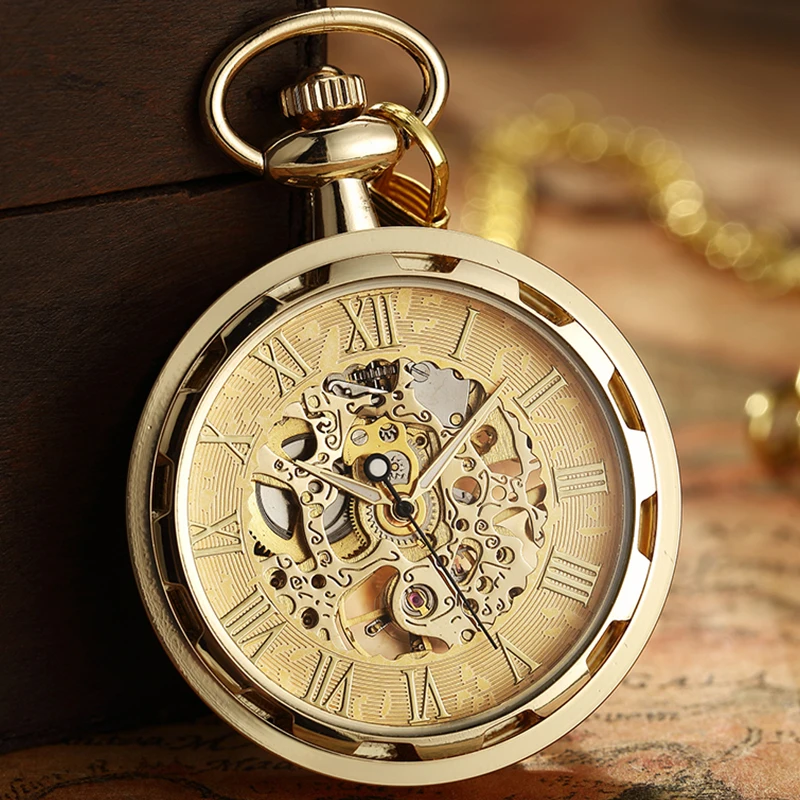Name: Reloj de bolsillo con cadena y diseño mecánico para hombre y mujer, cadena de reloj con números romanos, colgante con diseño de esqueleto Steampunk, unisex